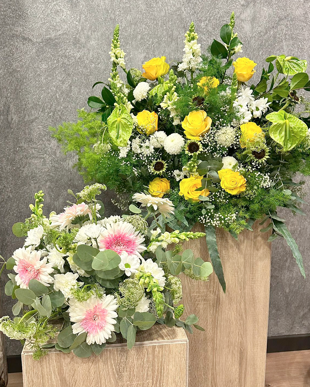 Las composiciones florales mostradas en nuestras imágenes son ejemplos orientativos. La disponibilidad de ciertas flores puede variar según la temporada y la cosecha. En caso de no disponer de alguna variedad concreta, esta será sustituida por otra de igual o mayor calidad, manteniendo siempre la estética, el estilo y el valor del diseño original.